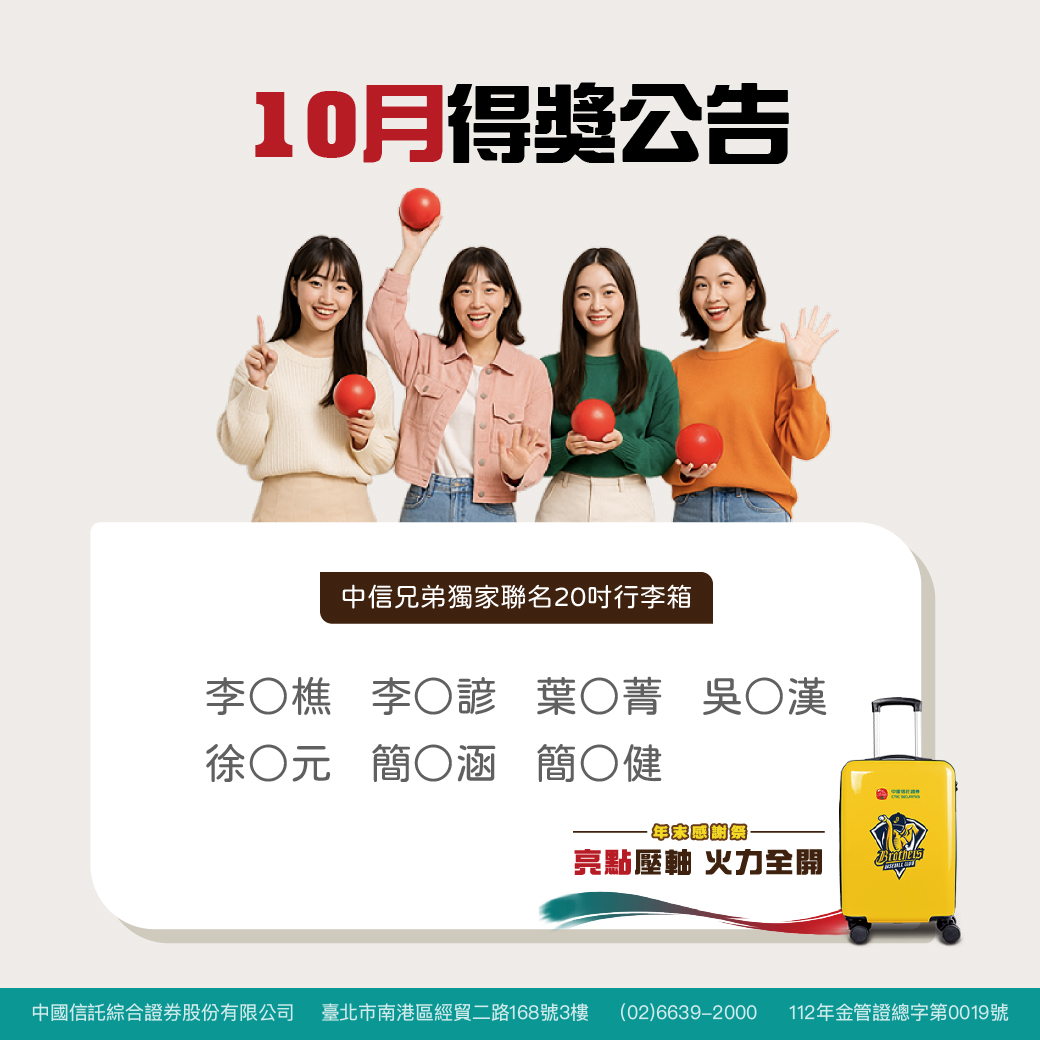 查看10月完整得獎名單 👉https://ctbcsec.tw/Ijyez