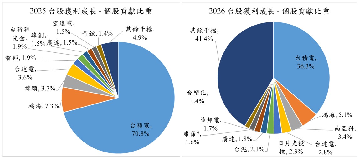 展望2026年,AI仍是絕對的焦點且無庸置疑,市場預期AI資本支出至少將持續成長至2030年且CAGR高達40%,但非AI類股亦將重返成長且評價正處低檔,因此存股配置上,建議依據自身風險承受能力,配置至少半數AI績優成長股,以Nvidia以及CSP ASIC供應鏈為主,諸如Amazon AWS與Google TPU等,其餘搭配非AI類股並以殖利率為篩選依據,方可降低整體投資組合波動度,提升風險效益,進而實現資本利得與股息收益同步收穫。
