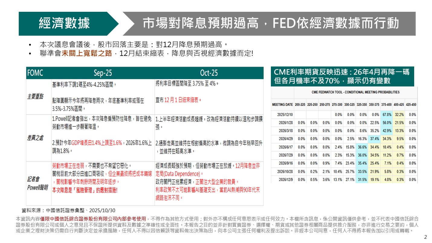 - 聯準會未關上寬鬆之路,12月結束縮表,降息與否視經濟數據而定!