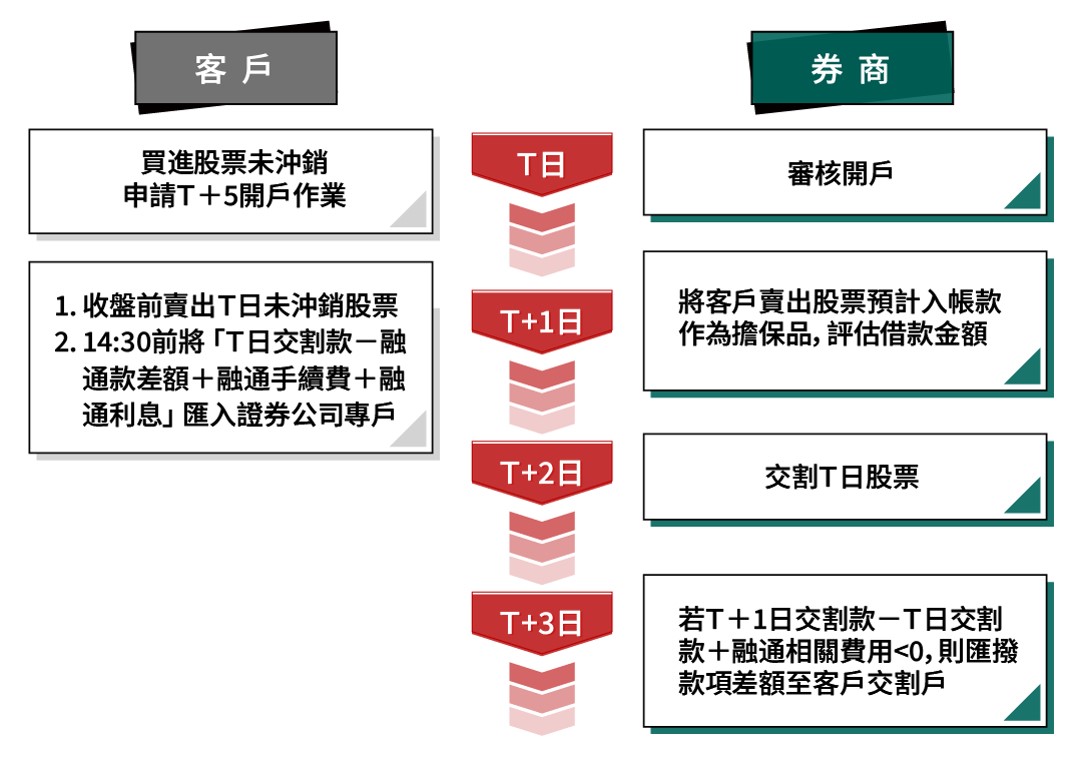 1.若申請經審核通過,須於T+1日賣出T日買進的股票。2.於14:30前將差額款項匯入證券公司專戶。