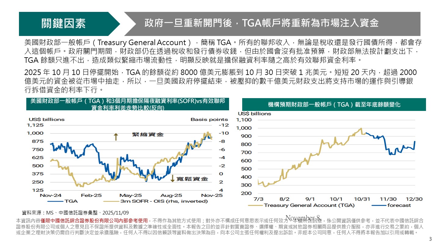 政府一旦重新開門後,TGA帳戶將重新為市場注入資金