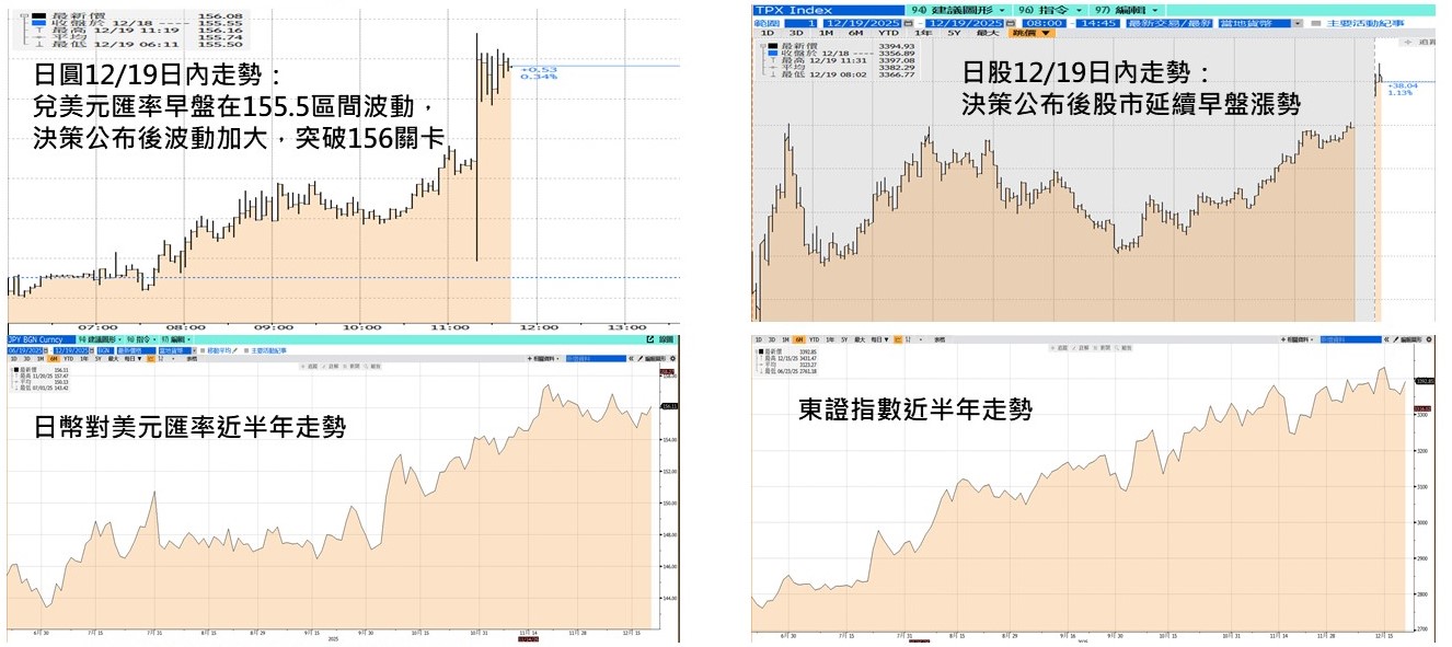 - 外匯市場方面,公布之後日圓兌美元匯率走弱至156.1附近,但由於市場已先行消化對日本央行將提高利率的預期,一般認為日圓的走弱空間亦將有限。