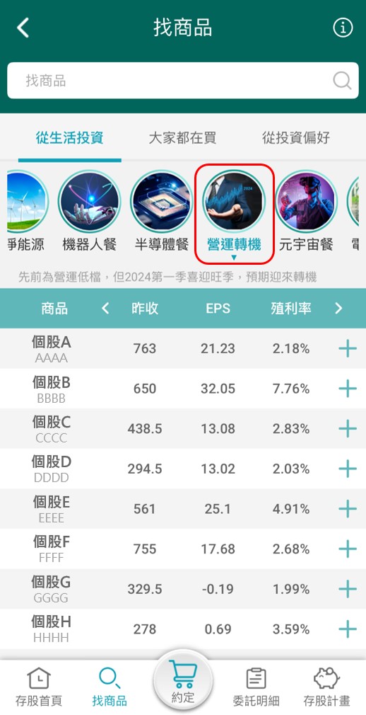 - 中信亮點app,台股定期【營運轉機餐】