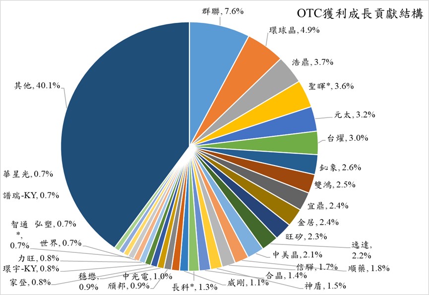 中小型個股之獲利成長金額貢獻OTC指數比重