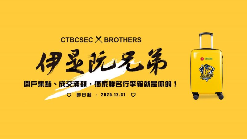即日起至 2025 年 12 月 31 日止,推出限時回饋活動「中信挺兄弟 伊是阮兄弟」,不論是新戶開立證券帳戶、累積交易金額,或是參加亮點family任務與粉絲應援,都有機會獲得中信兄弟獨家好禮。
